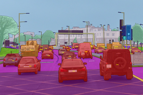 In Semantic Segmentation each pixel of an image needs to be linked to a labeled image, for example a car, bike, traffic lights or pedestrian.