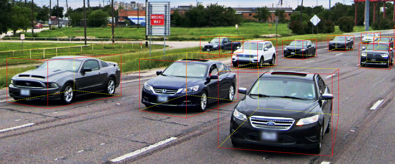 Used to train computer vision models for spatial cognition from 2D images or videos. Relative distance of each mobile object from the ego car and vanishing point can be measured.