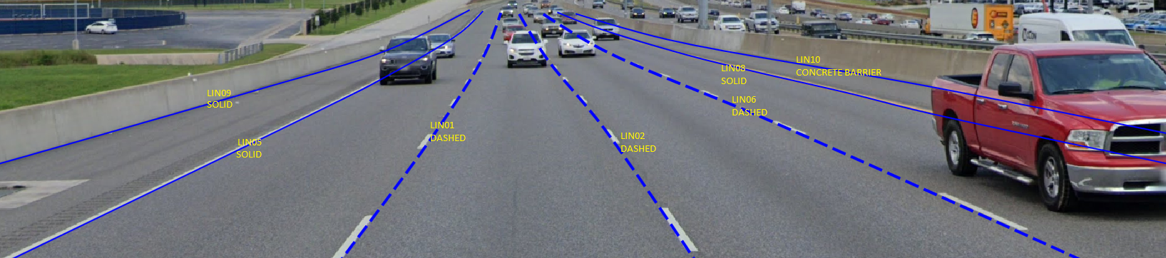 We at TriGeo can annotate any type of road and street lanes in rural and urban areas with precise accuracy, making it recognizable for computer vision to train autonomous vehicle perception computer models. We can annotate all types of road lanes including Single lines, double lines, broken lines and single solid lines and create custom attributions.